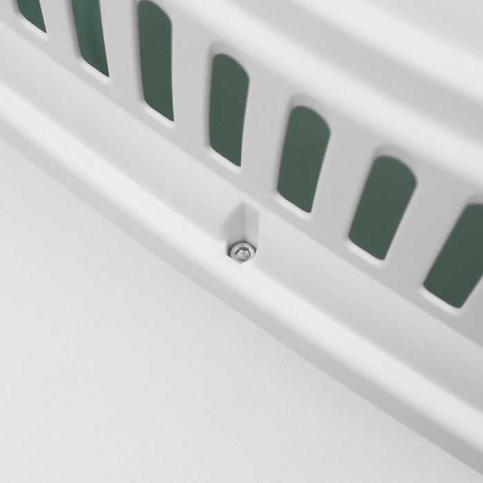 Переноска для животных изготовлена из прочного пластика и имеет металлическую дверь.