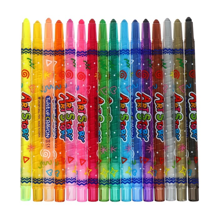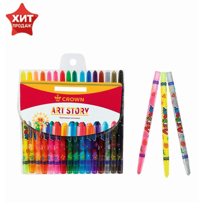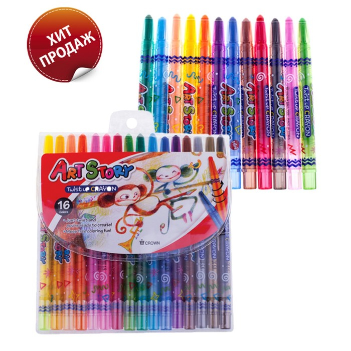 Мелки восковые 16 цветов Crown Art Story, выкручивающийся стержень
