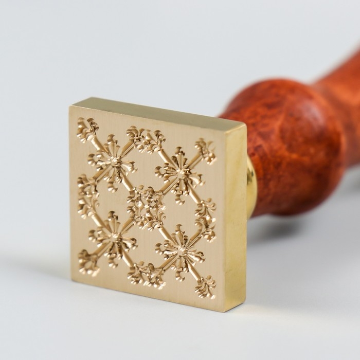 Печать для сургуча с деревянной ручкой "Цветы в узорах" 9х2,2х2,2 см