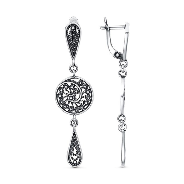 Серьги «Византия» с подвеской, посеребрение с оксидированием