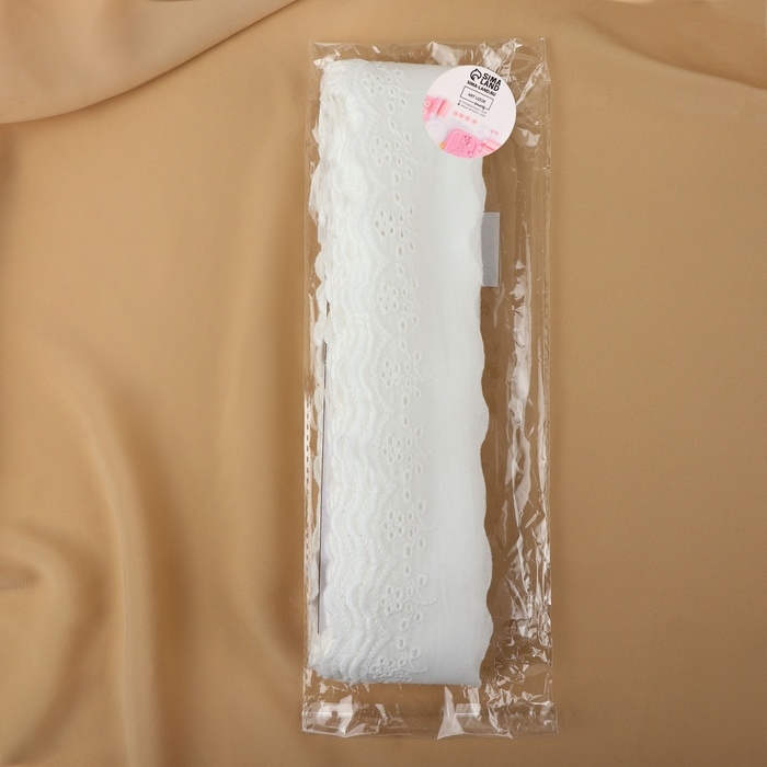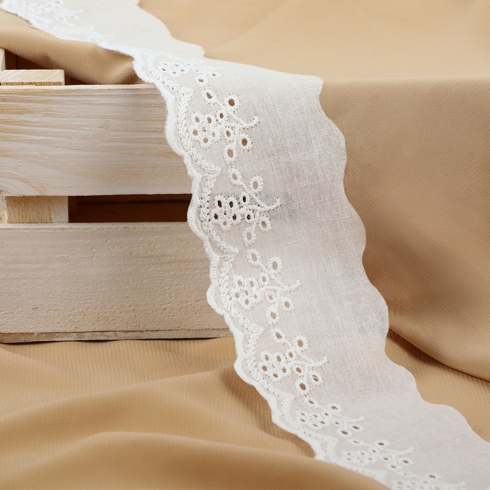 Кружево шитьё, 55 мм × 13 ± 1 м, цвет белый