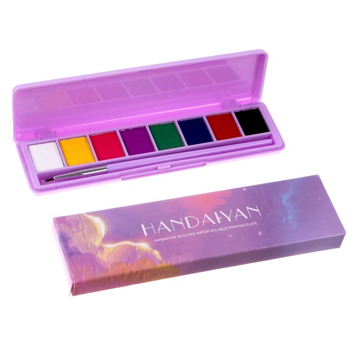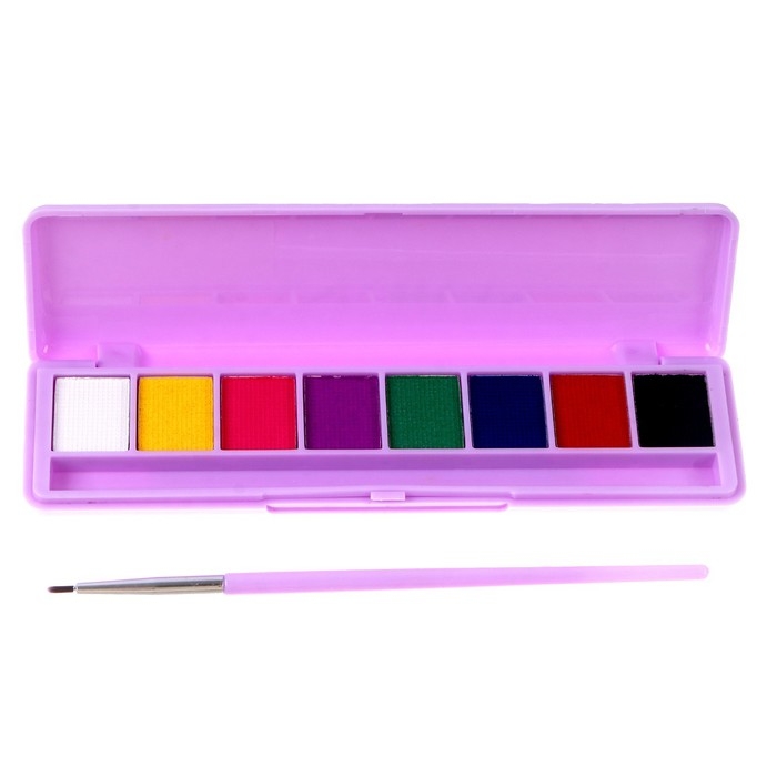 Аквагрим профессиональный для лица и тела 8 цветов, 2 светятся от ультрафиолета + кисть