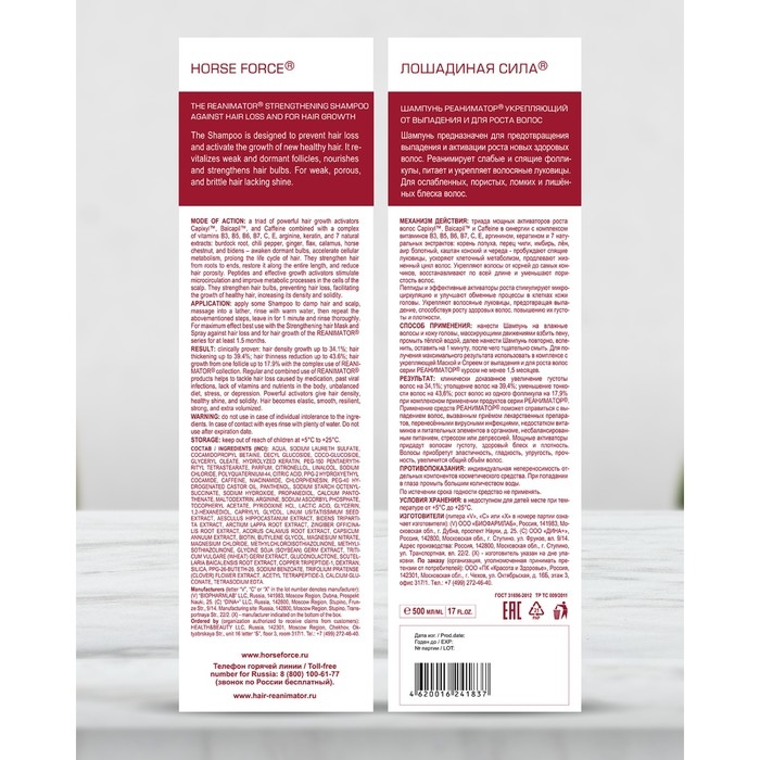 Шампунь Реаниматор Лошадиная сила для роста волос и глубокого восстановления, 500 мл