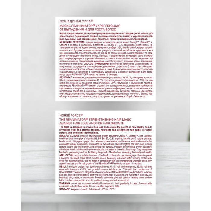 Маска Реаниматор Лошадиная сила укрепляющая от выпадения и для роста волос, 250 мл