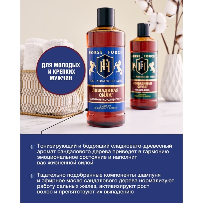Шампунь-кондиционер Лошадиная сила с маслом сандалового дерева для, мужчин, 500 мл