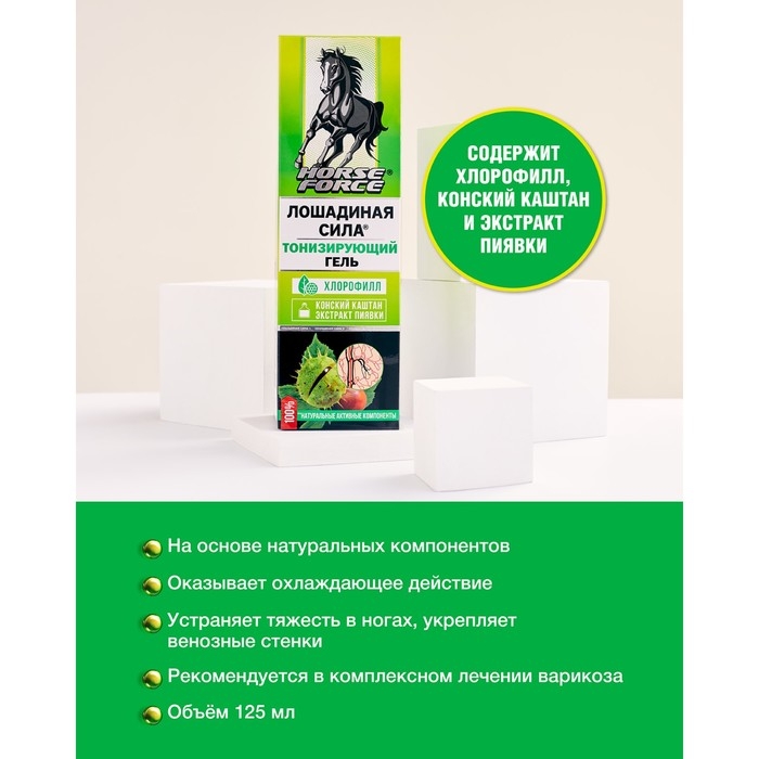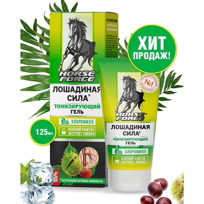 Гель тонизирующий Лошадиная сила с конским каштаном и экстрактом пиявки, 125 мл