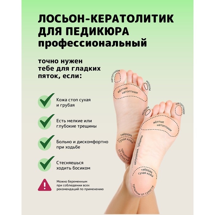 Профессиональный лосьон-кератолитик для педикюра – косметическое средство нового поколения для создания гладких и нежных пяточек без предварительного распаривания кожи ног.