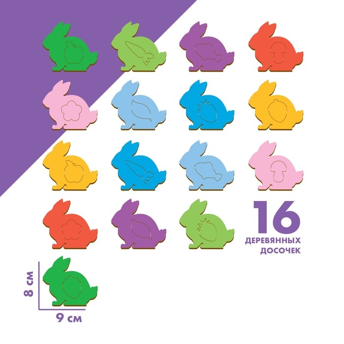 - Задача малыша — поместить нужный элемент в отверстия на досочках.