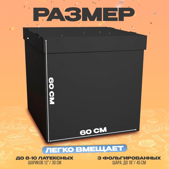Коробка 60х60х60 см, чёрная с крышкой, 1шт.