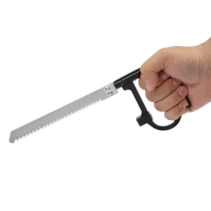 Ножовка изготовлена из прочного металла, который обеспечивает долговечность и надёжность инструмента. Двухкомпонентная ручка инструмента удобно лежит в руке и обеспечивает комфортную работу. Лезвие имеет специальную заточку, позволяющую легко и точно резать различные материалы, включая дерево, пластик и металл.