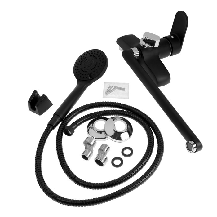 Смеситель для ванны ZEIN Z3843, однорычажный, душевой набор, лейка 5 режимов, черный