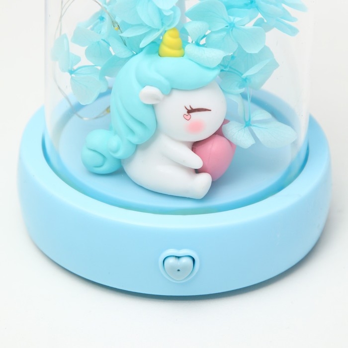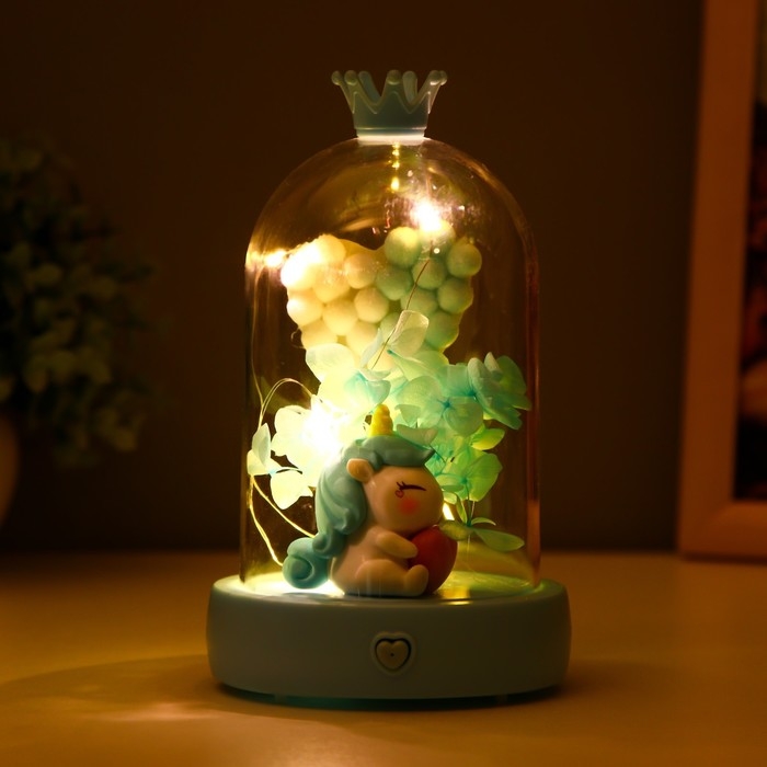 Ночник музыкальный колба "Единорог" LED 3хААА голубой 9,5х9,5х16 см
