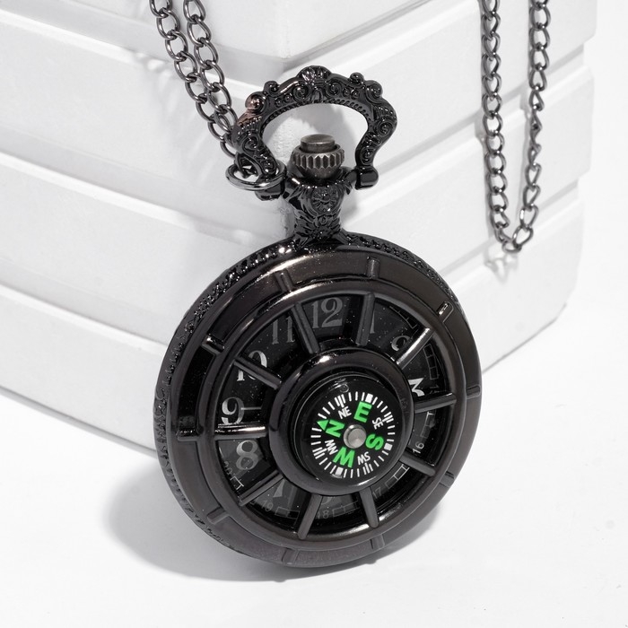 Часы карманные "Классика", кварцевые, цепочка l-37 см, d-4.5 см, с компасом
