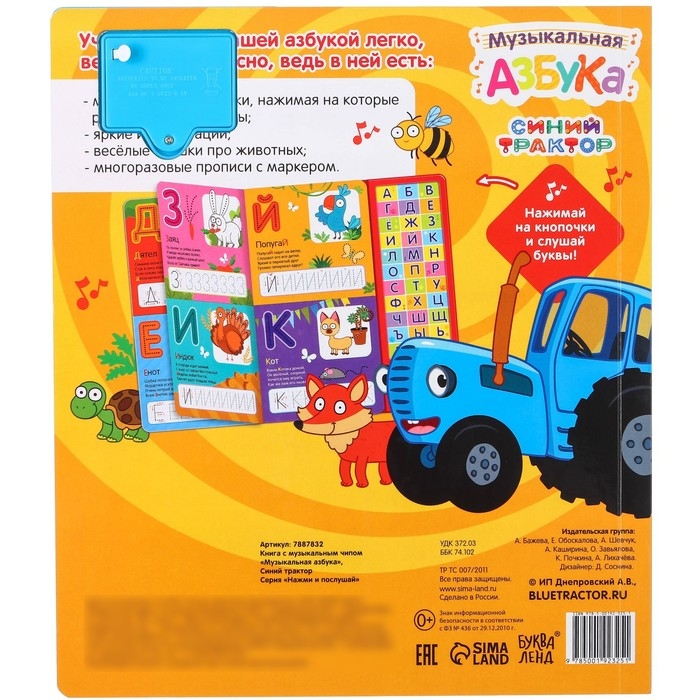 Книга с музыкальным чипом + маркер «Музыкальная азбука», 18 стр., Синий трактор