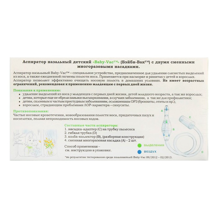 Аспиратор назальный детский Baby-Vac (Бейби-Вак) с двумя сменными насадками
