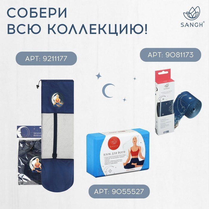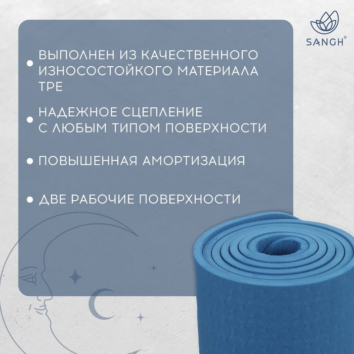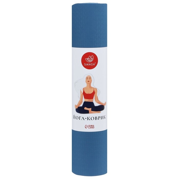 Коврик для йоги Sangh, 183х61х0,6 см, цвет синий