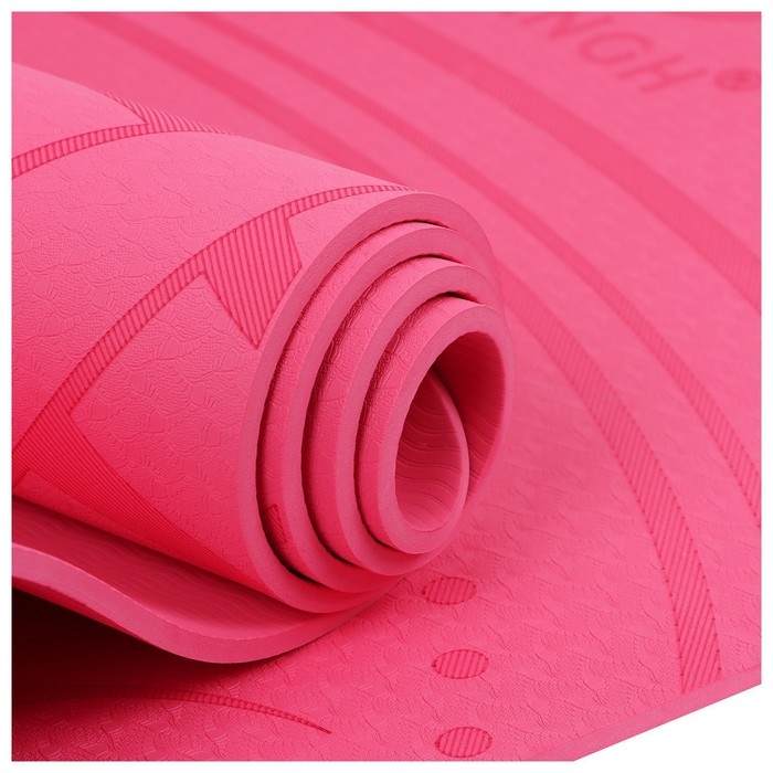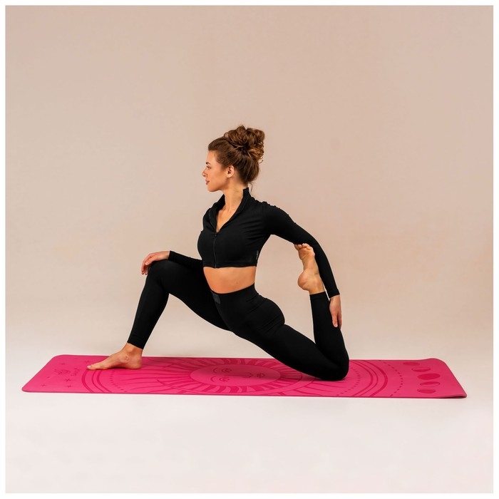 Коврик подходит для занятий йогой и фитнесом дома и в спортивных залах. Помогает в выполнении асан или других упражнений. Смягчает упор тела на твёрдую поверхность. Сохраняет форму после выполнения упражнений.