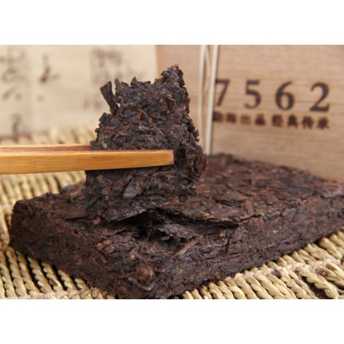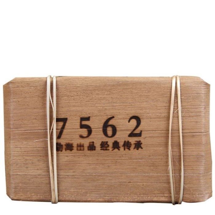 Шу Пуэр (также известный как темный пуэр) – чай, прошедший ферментацию естественным (под воздействием микроорганизмов) или искусственным путём. Сырьём для такого продукта служат листья старых деревьев, растущих в горах среди трав и цветов, в богатой почве. Мощная корневая система деревьев впитывает и отдаёт чайному листу все полезные вещества. Именно этот процесс отличает его от других видов чая, придавая в результате напитку особый вкус и наделяя его полезными свойствами. Фабрика Мэн Хай всегда славилась своим мастерством в изготовлении шу пуэров. Один из самых популярных продуктов фабрики – рецептурный прессованный пуэр 7562, которому исполнилось 40 лет (впервые был изготовлен в 1975 году). Данный Пуэр изготовлен из крупнолистового чая и выдержан в течение 5 лет. На вкусе этого знаменитого кирпича выросло несколько поколений поклонников пуэра. Новый дизайн упаковки, разработанный на фабрике Мен Хай, подчёркивает высокий статус этого прессованного пуэра: рядом с номером 7562 изображены иероглифы Цзин Дянь, что означает «классика». А бамбуковые листья, в которые завёрнут кирпич, лучше сохранят чай при его длительном хранении.