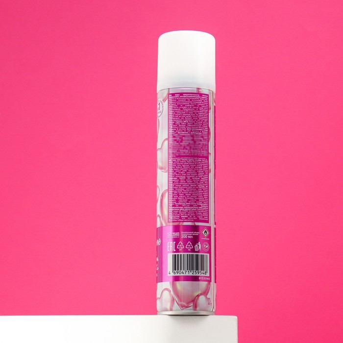 Состав: бутан, пропан, денатурат спирта, крахмал риса посевного, изобутан, отдушка, стеарат магния, хлорид дистеарилдимония, хлорид цетримония, вода, изопропиловый спирт.
