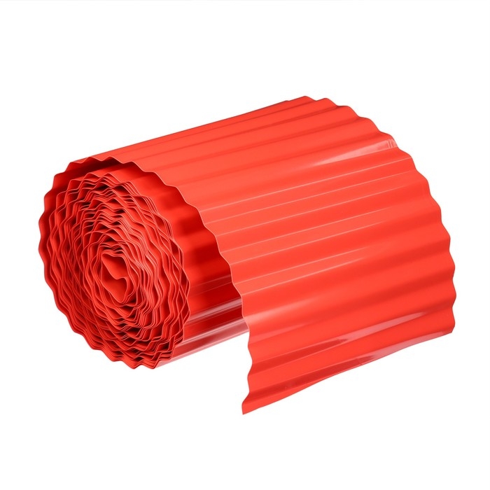 Лента бордюрная, 20 см × 9 м, толщина 0.6 мм, пластиковая, гофра, терракот, Greengo