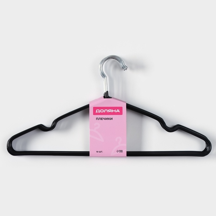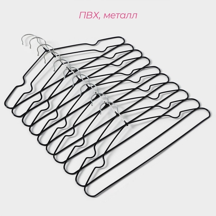 Плечики - вешалки для одежды Доляна, 40×20 см, 10 шт, антискользящее покрытие, цвет чёрный