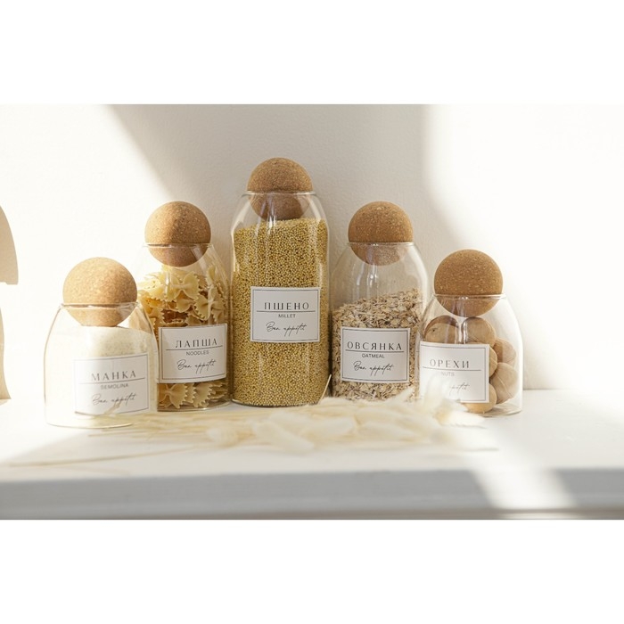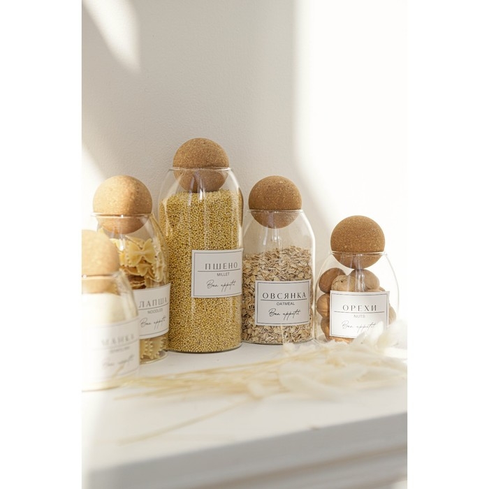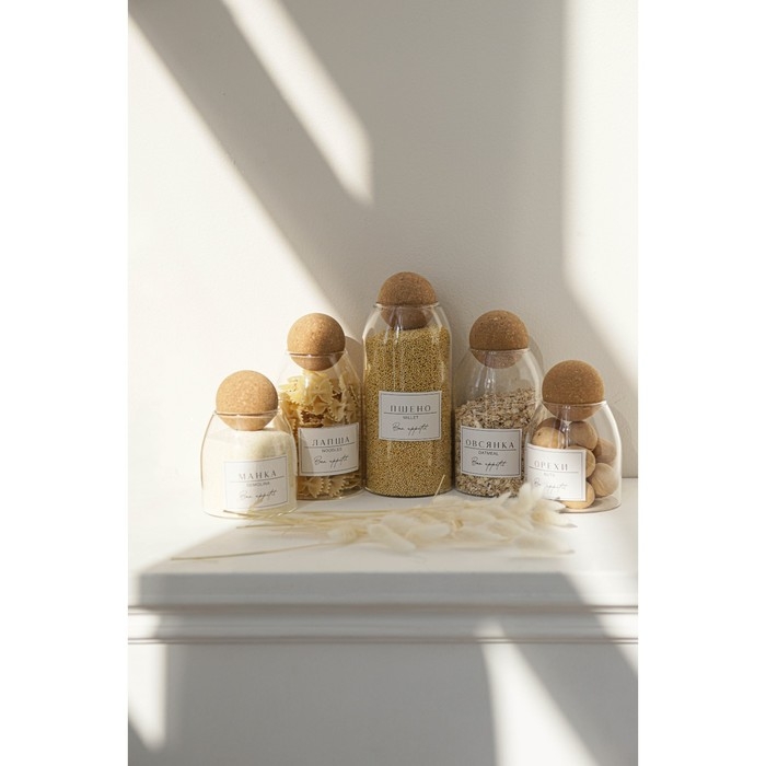 Банка стеклянная для хранения сыпучих продуктов «Эко. Шар», 1,1 л, 9,5×24 см, с пробковой крышкой