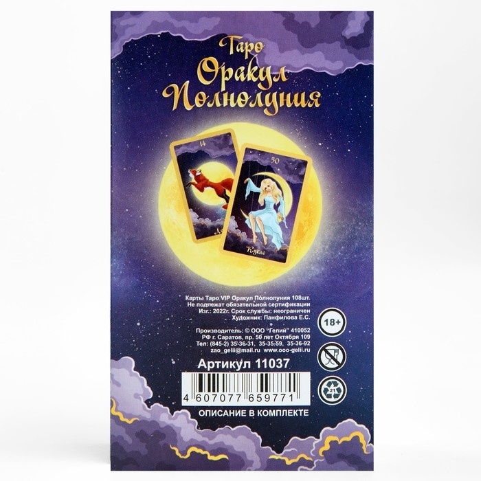 Карты таро Оракул полнолуния, карты гадальные, с инструкцией, 108 карт, 7.1 х 11.6 см