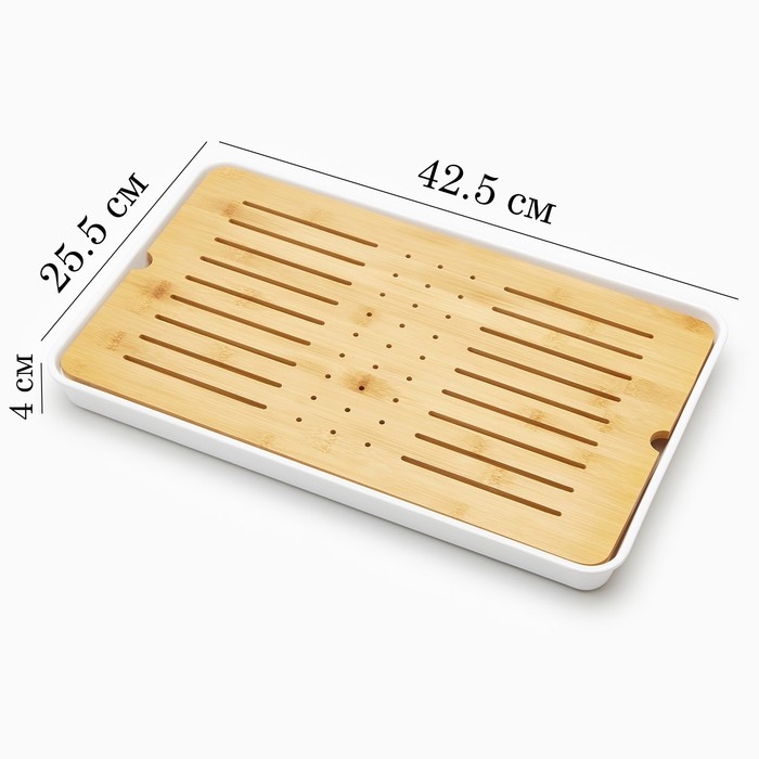 Поднос для чайной церемонии, 42.5 х 25.5 х 4 см, белый поддон