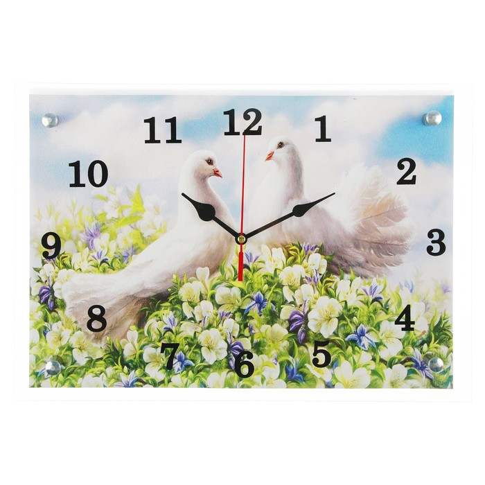 Часы-картина настенные, интерьерные "Пара голубей", бесшумные, 25 х 35 см