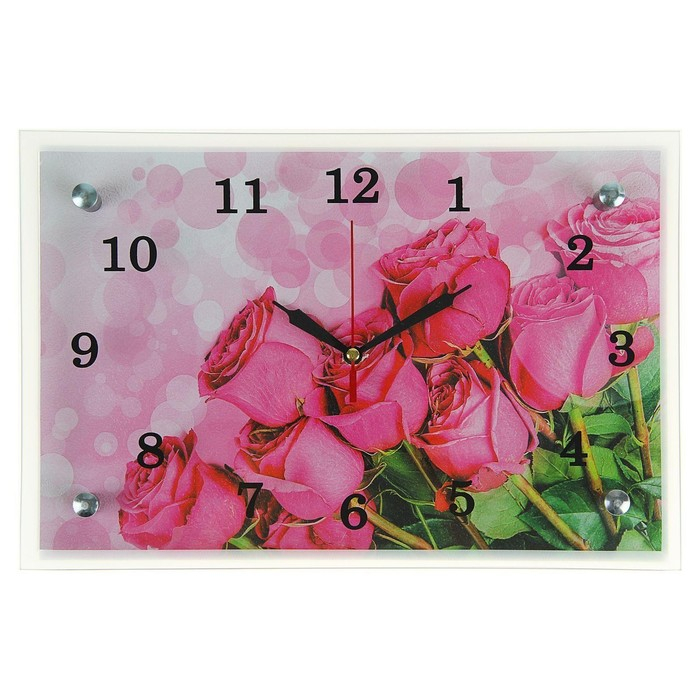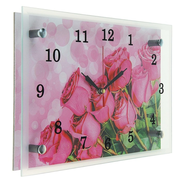 Часы-картина настенные, интерьерные "Розовые розы", бесшумные, 30 х 20 см