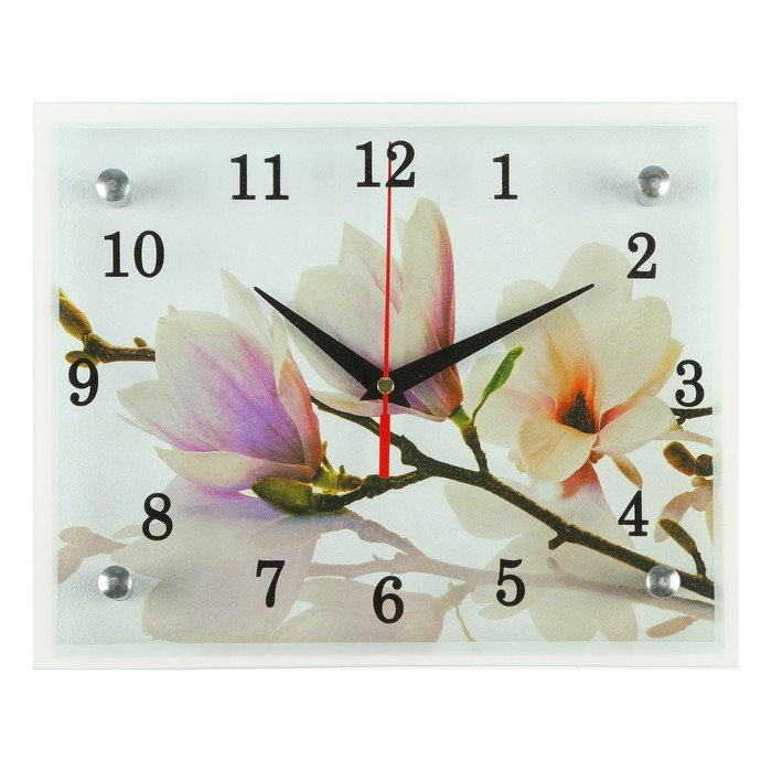 Часы-картина настенные, интерьерные "Бело-сиреневые цветы", бесшумные, 25 х 20 см