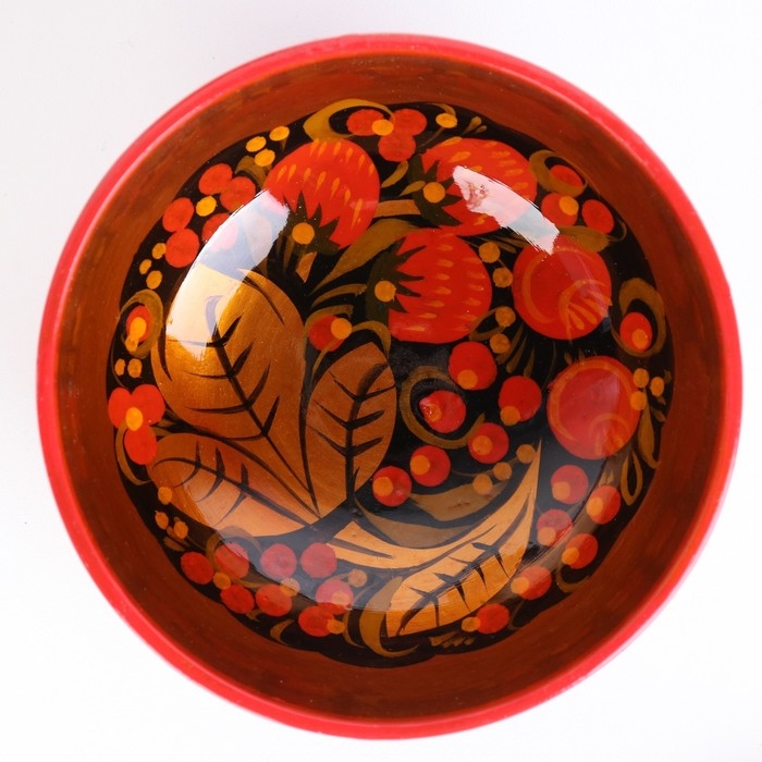 Традиционные элементы Хохломы — ягоды рябины и земляники, цветы и листья, птицы, рыбы и звери.