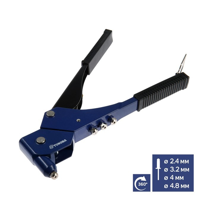 Заклепочник ТУНДРА, 300 мм, поворотный на 360°, заклепки 2.4 - 3.2 - 4 - 4.8 мм