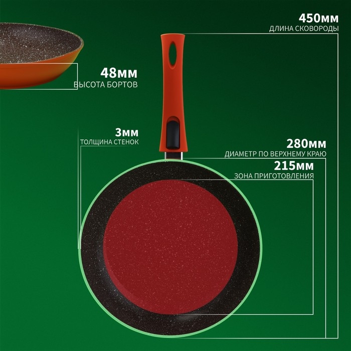 Сковорода Magistro Terra, d=28 см, съёмная ручка soft-touch, антипригарное покрытие, индукция, цвет оранжевый