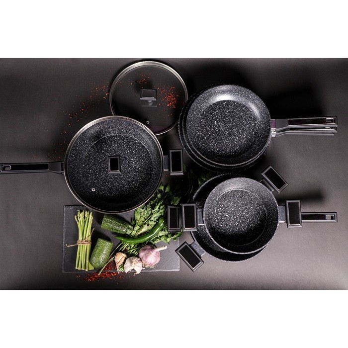 В серии Warrior представлены ковш, кастрюля, сковорода с крышкой и без, блинная, гриль. Соберите всю посуду из коллекции, чтобы готовить было ещё приятнее!
