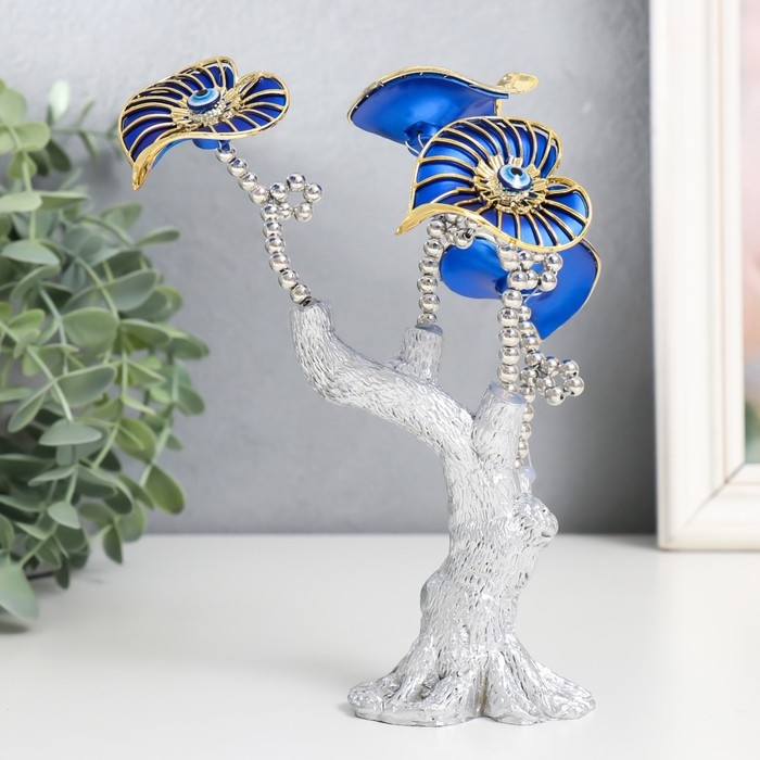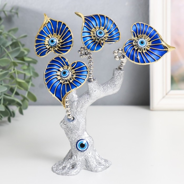 Сувенир от сглаза "Цветущее дерево, листья-сердце" серебро 11,5х5х18,5 см