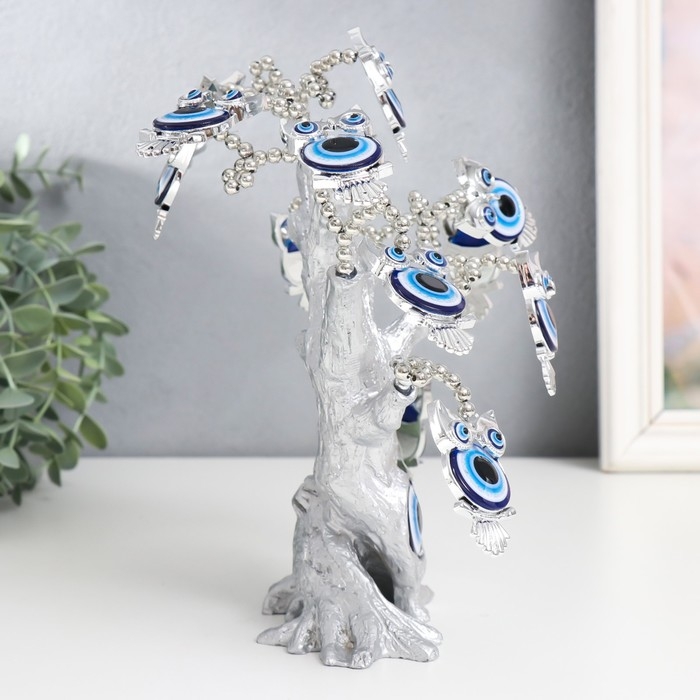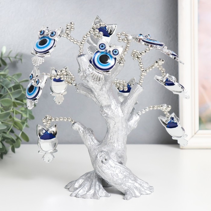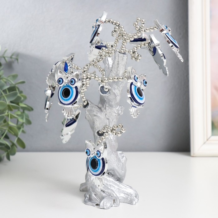 Сувенир от сглаза "Дерево с филинами" серебро 17,5х6,5х23 см