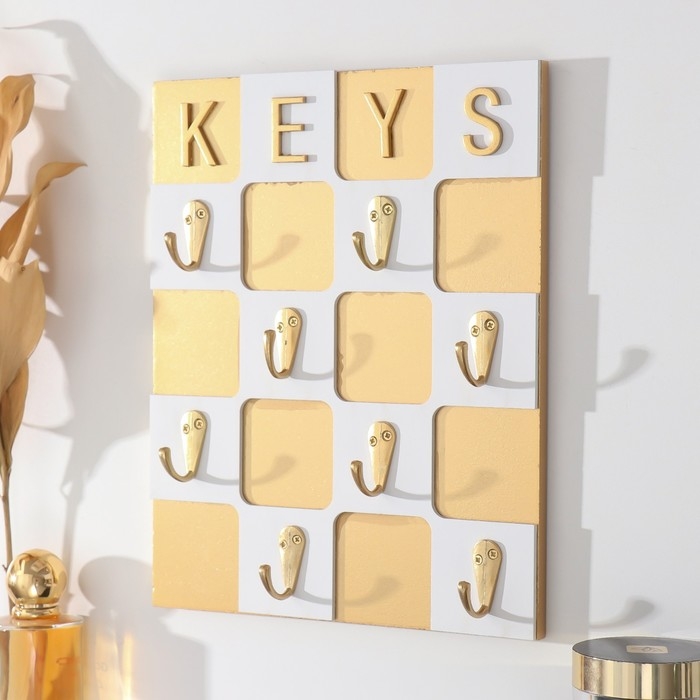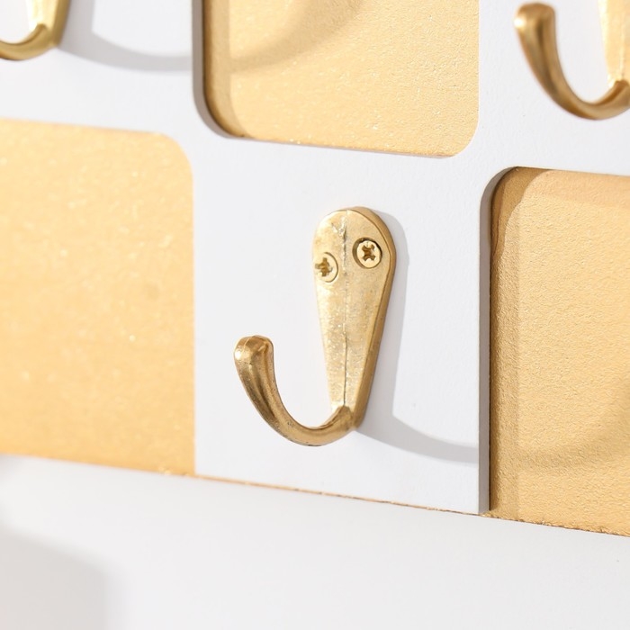 Крючки декоративные дерево "Шахматная доска" бело-золотая 20х3х25 см