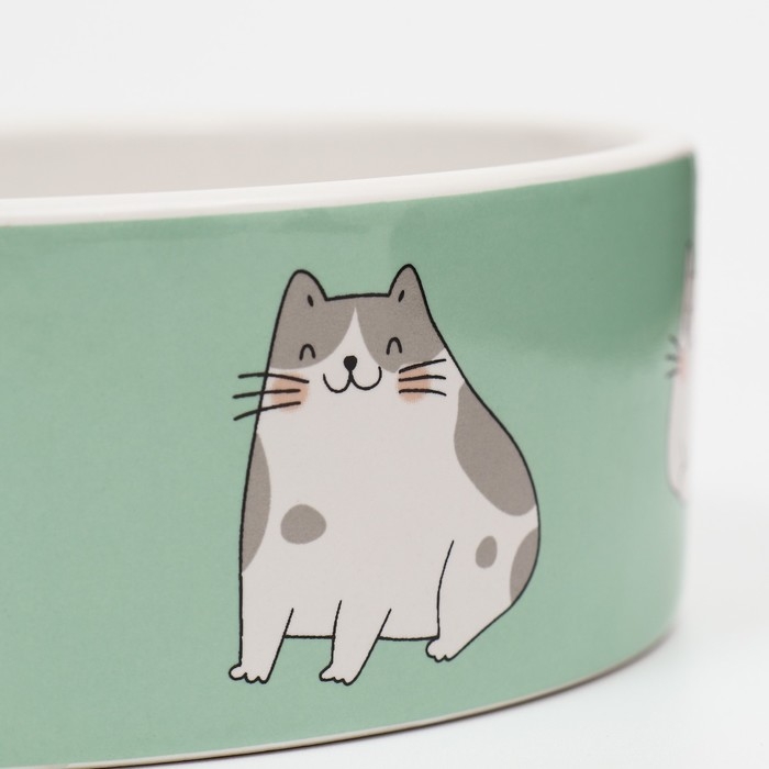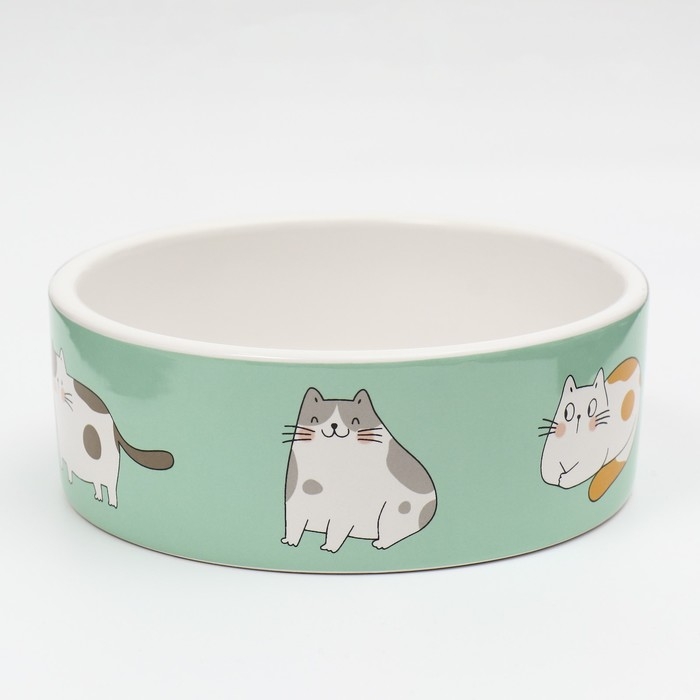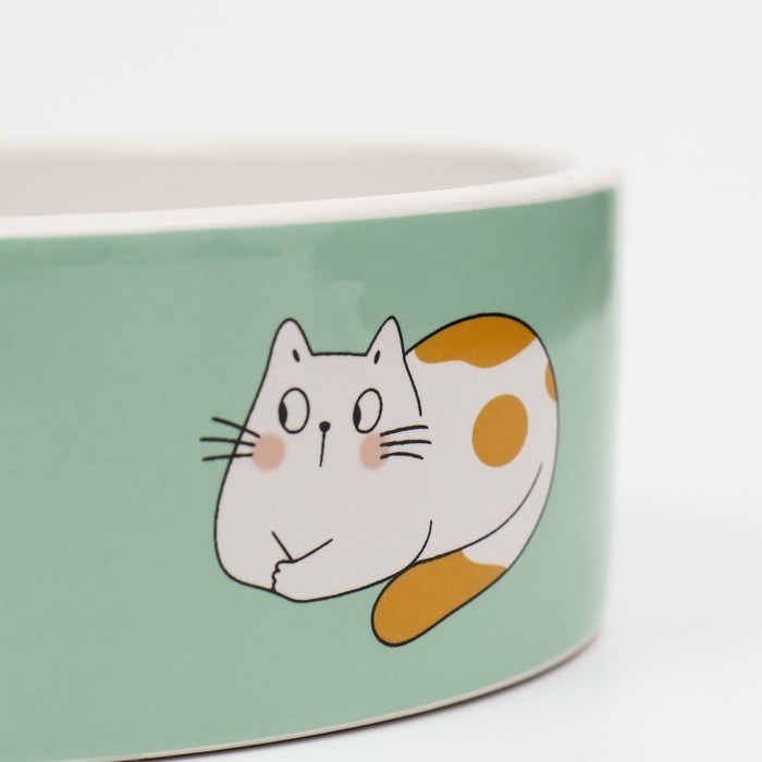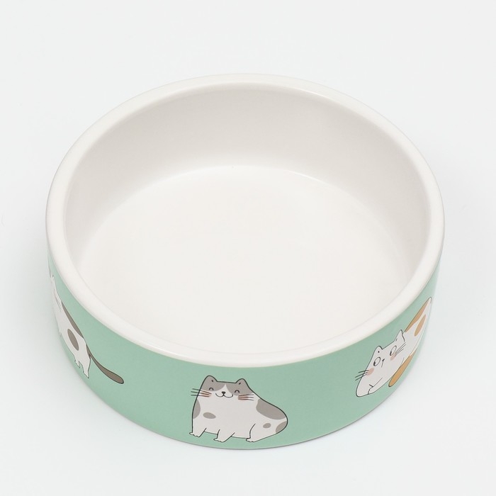 Миска керамическая "Котяры" 300 мл 12,5 x 4,5 cм, бело-зелёная