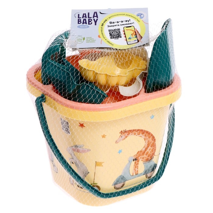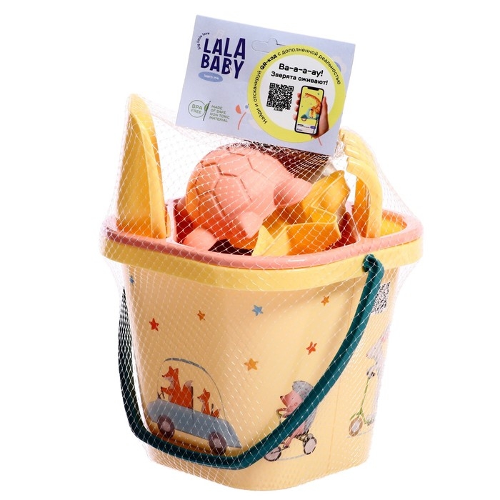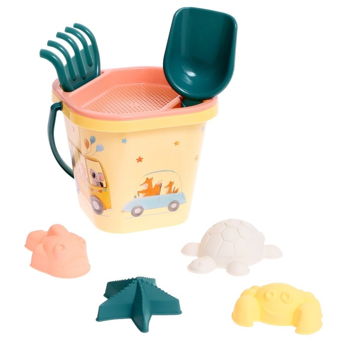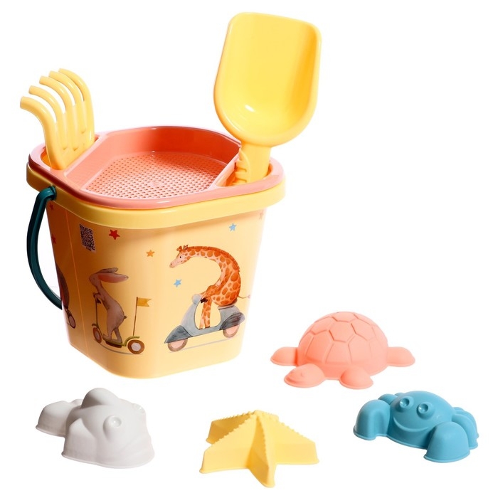 Набор для игры в песке: ведерко, сито, совочек, грабли, 4 формочки