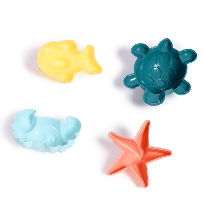 Песочный набор: 4 формочки для песка, совок с камешками, МИКС