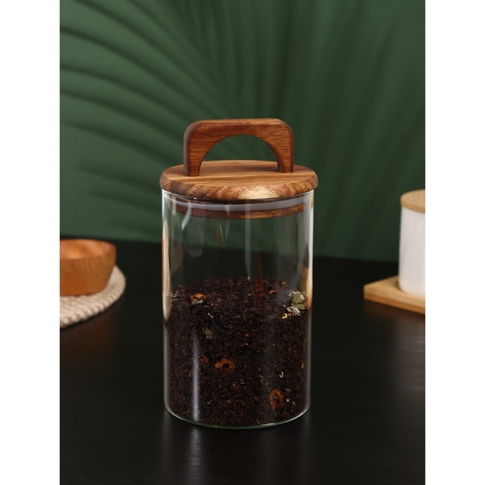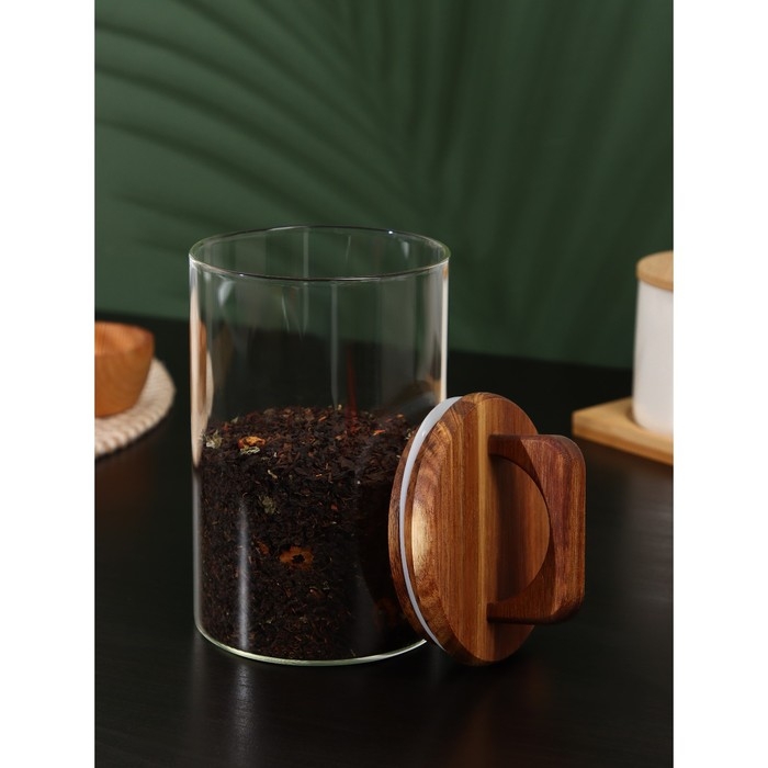 Банка стеклянная для хранения сыпучих продуктов «Вуд», 950 мл, 10×20 см, с деревянной крышкой