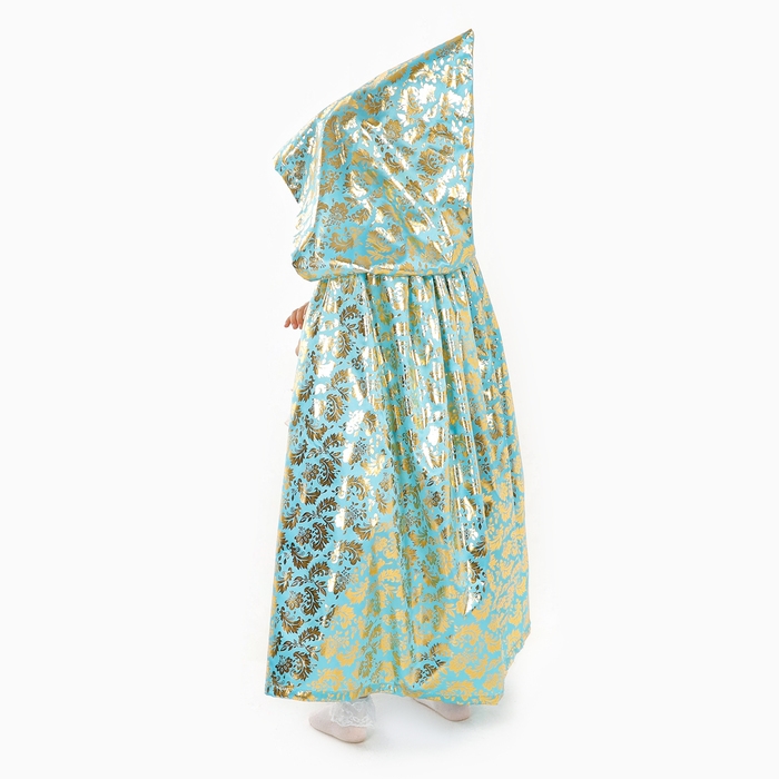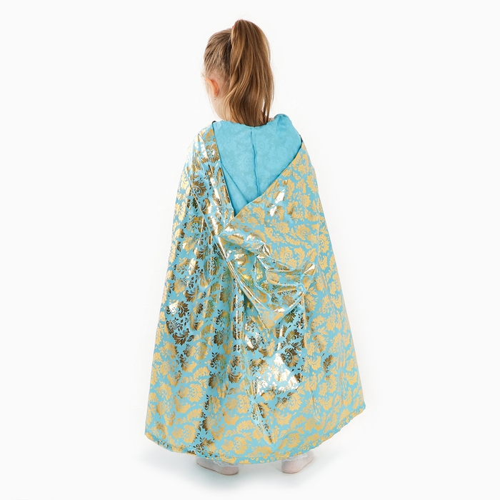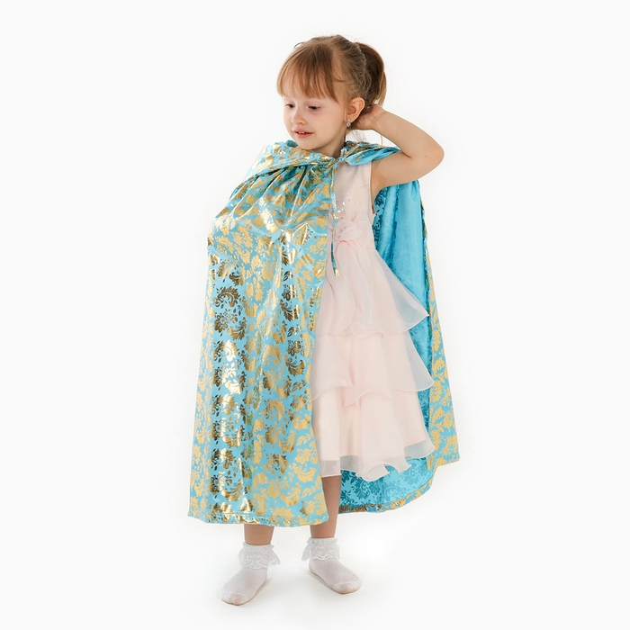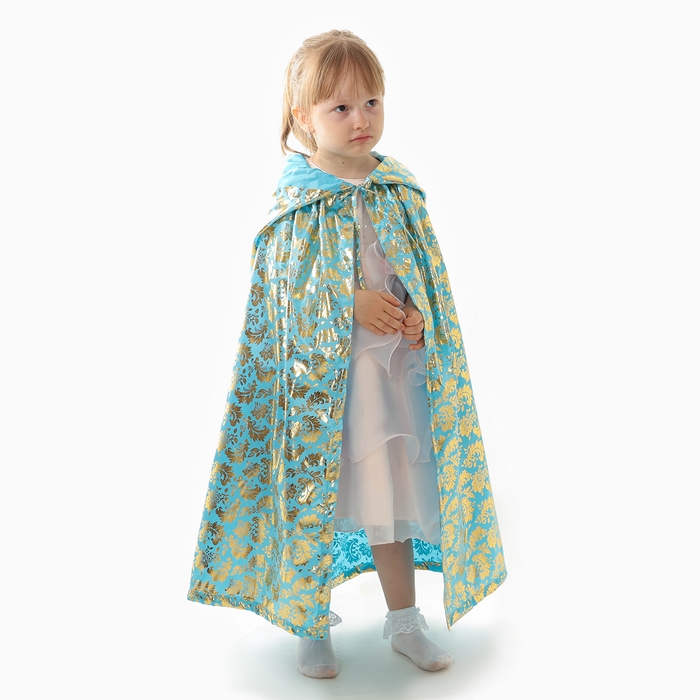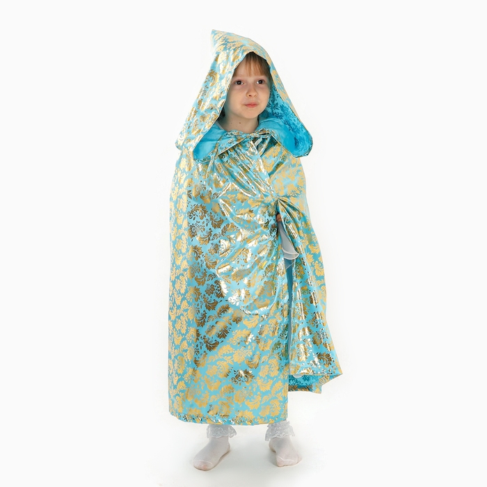 Карнавальный плащ детский,атлас,цвет золотой узор на голубом, длина 100см