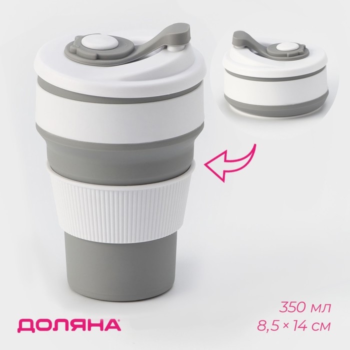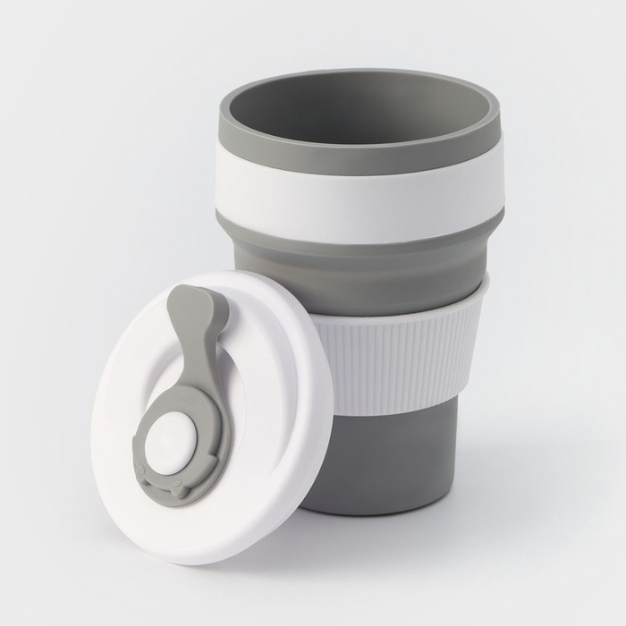 Стакан складной с крышкой Доляна «С собой», 350 мл, 8,5×14 см, цвет серый
