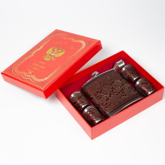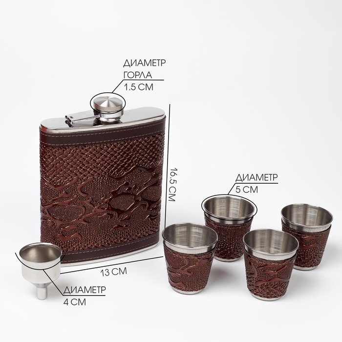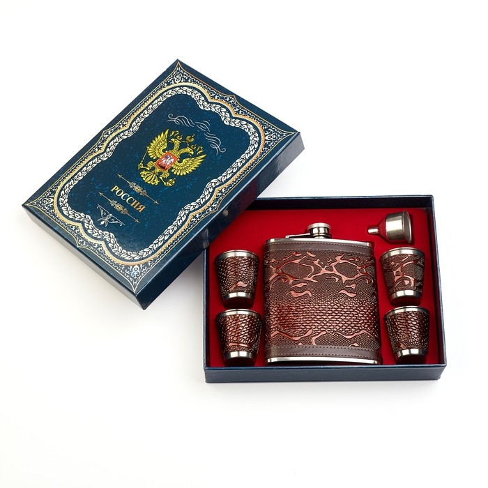 Подарочный набор 6 в 1: фляжка 540 мл, 4 стопки по 75 мл, воронка