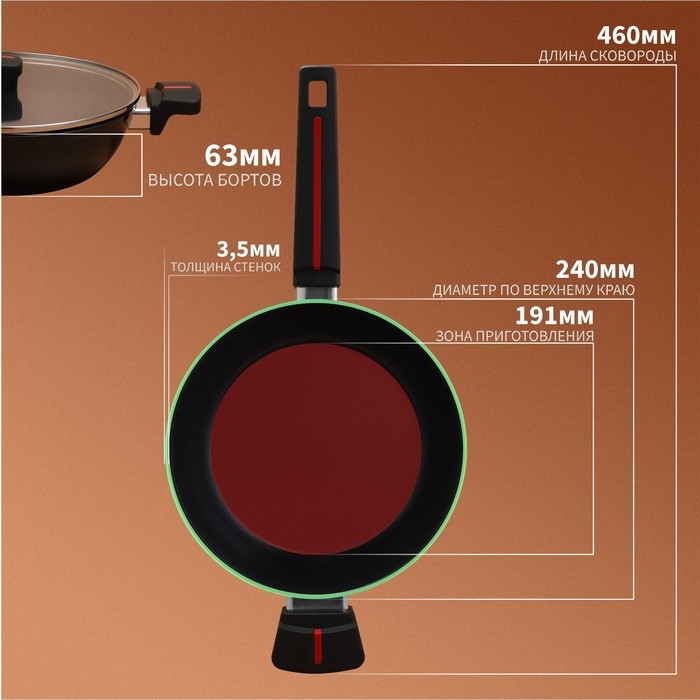 - Высококачественый кованый алюминий с толстым дном 3,5 мм сохранит форму изделия даже если сковородка была перегрета.