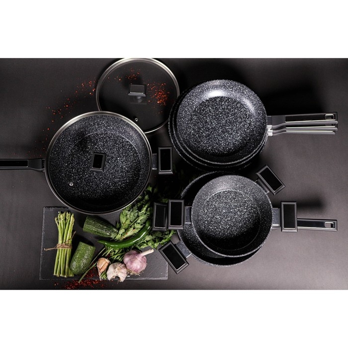 В серии Warrior представлены ковш, кастрюля, сковорода с крышкой и без, блинная, гриль. Соберите всю посуду из коллекции, чтобы готовить было ещё приятнее!