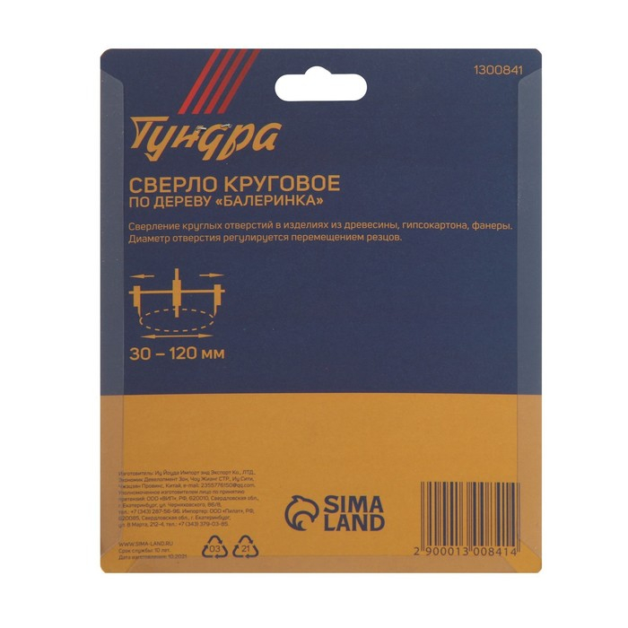 Сверло круговое регулируемое по дереву ТУНДРА "Балеринка", 30 - 120 мм