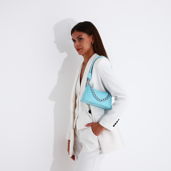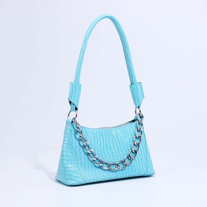 Сумка-багет на молнии, цвет голубой