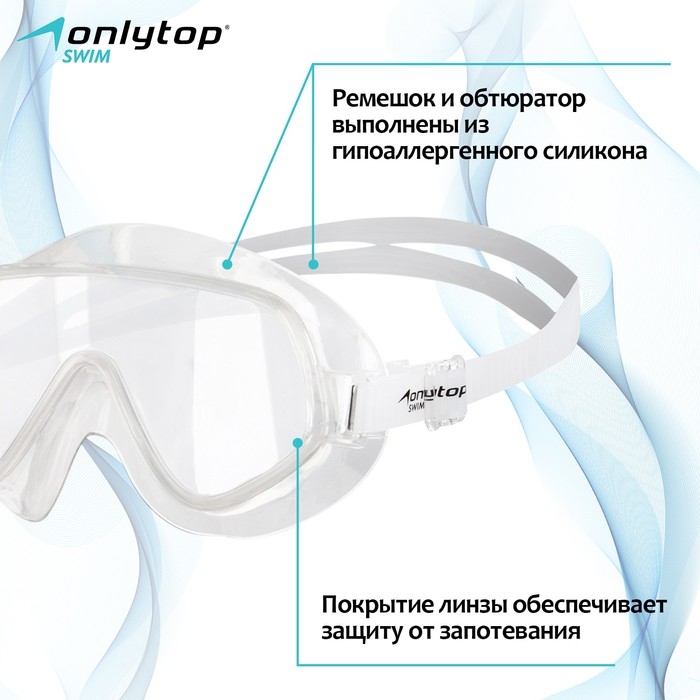 Очки-полумаска для плавания ONLYTOP, цвет белый/прозрачный
